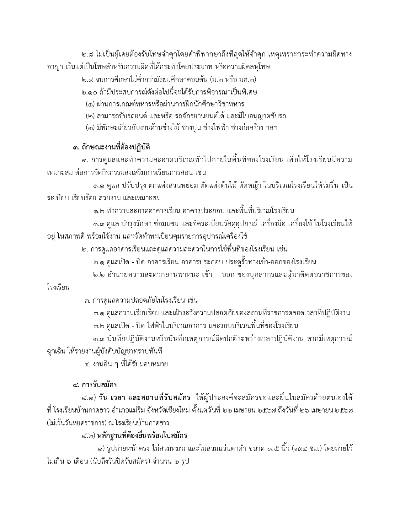 ประกาศโรงเรียนบ้านกาดฮาว เรื่อง รับสมัครคัดเลือกบุคคลเพื่อจ้างเป็นลูกจ้างชั่วคราว จ้างเหมาบริการรายเดือน ตำแหน่ง นักการภารโรง 1