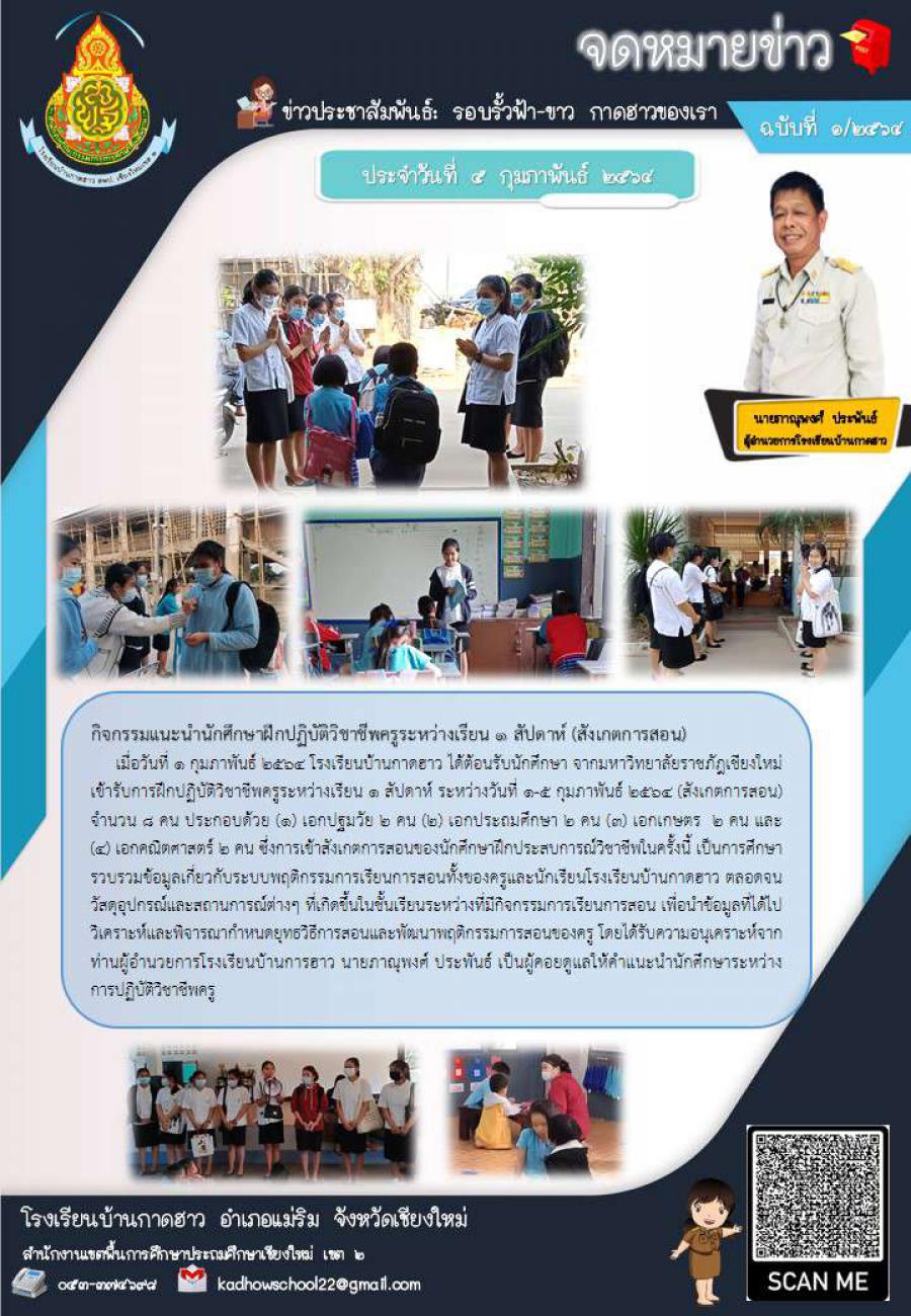 กิจกรรมแนะนำนักศึกษาฝึกปฏิบัติวิชาชีพครูระหว่างเรียน 1 สัปดาห์ (สังเกตการสอน)
