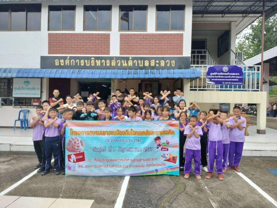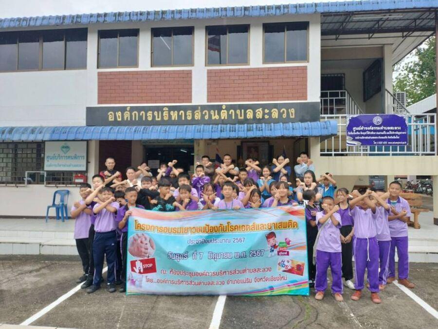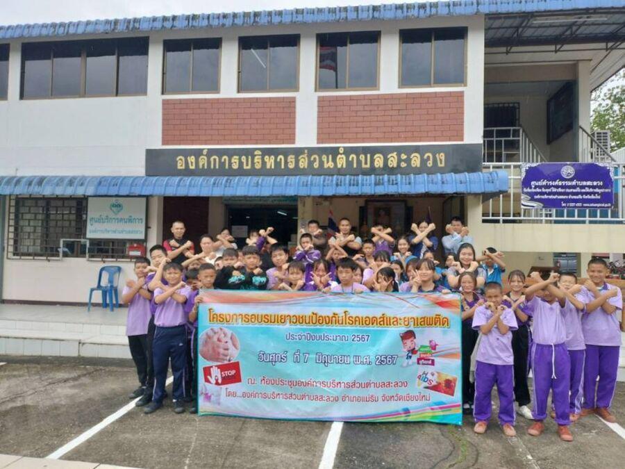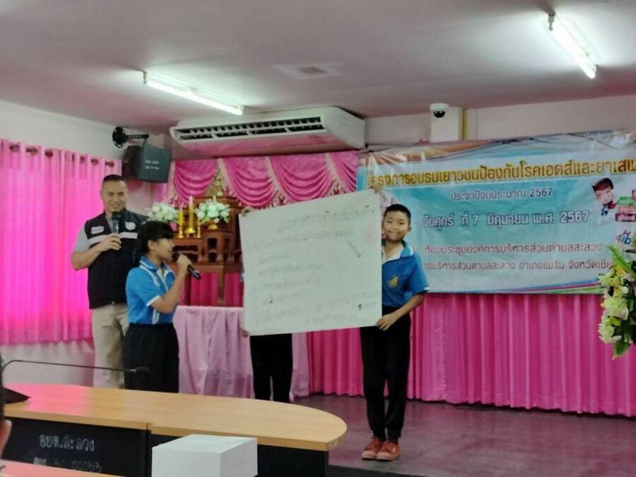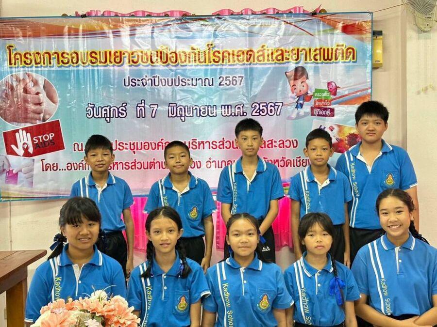 นักเรียนแกนนำเข้าร่วมการอบรม ตาม ?โครงการการอบรมเยาวชนป้องกันโรคเอดส์และยาเสพติด"